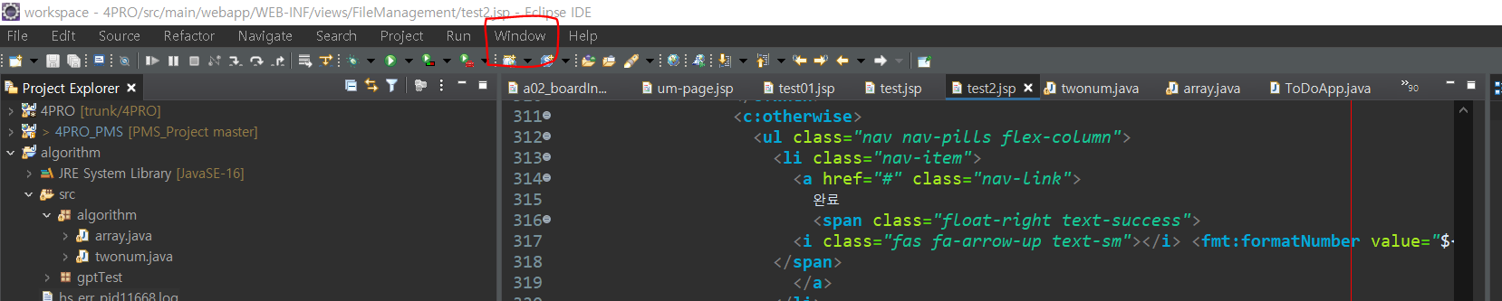 이클립스 실행후 상단 네비게이션 에서 Window -> preferences 를 클릭 해줍니다.