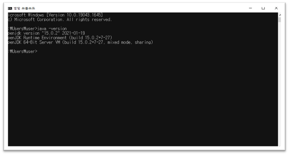 java -version 을 입력후 엔터를 눌러 잘 설정되었는지 확인해 줍니다.