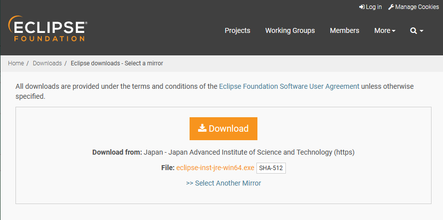 홈페이지로 들어가서 각자 컴퓨터 버전에 맞는 파일로 이클립스를 다운로드 해줍니다