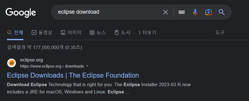 이후 구글 검색창에 eclipse 다운로드를 검색후 공식 홈페이지로 들어가줍니다.
